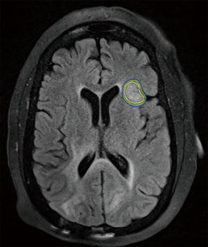 Glioblastomas (GBM) account for approximately 15% of all primary brain tumors and 46% of primary malignant brain tumors and tend to be more common in older white males. Despite aggressive therapy, expected overall survival at 5 years is 5%, with better outcomes for those diagnosed at young ages (34). The only factors that have been conclusively shown to increase the risk of having a GBM have so far been prior exposure to high doses of ionizing radiation and inherited mutations associated with rare syndromes (35). Patients typically present with headaches or seizures, along with focal neurologic deficits and symptoms of increased intracranial pressure. The most useful imaging for diagnosis is a T1-weighted MRI with contrast along with T2-weighted and fluid-attenuated inversion recovery sequences (FLAIR), which classically demonstrate an irregular ring-enhancing lesion with surrounding edema.