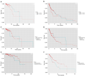Survival data considering the extent of surgery